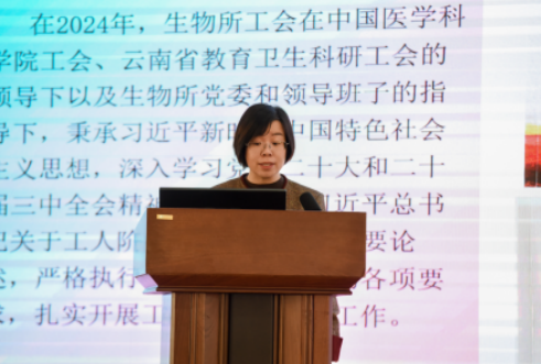 工会委员会主席吴俊同志作工会委员会工作报告。她对2024年工会的重点工作进行了全面回顾,肯定了工会在思想引领、职工福利发放、工会自身建设、职工权益保障、服务职工活动开展、“巾帼建功”等方面取得的成绩。她要求工会继续加强政治思想理论学习;加强民主管理,推动职工各项权益落实;积极组织开展文体活动,增强职工凝聚力;弘扬劳动精神、劳模精神、工匠精神;继续开展维护劳动领域政治安全工作;解决工作落实与执行力不足等问题;推动工会工作的制度化与规范化进程,为推动生物所事业发展作出更大贡献。