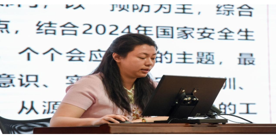 党委书记游丹同志以“以习近平法治思想为指导,深入学习贯彻党的二十届三中全会精神,坚定不移贯彻总体国家安全观”为主题开展培训,领学了习近平总书记的法治思想和二十届三中全会关于国家安全工作的重要要求和部署,分别从总体国家安全观的重要地位、丰富内涵、原则方法及落实的举措四个方面进行了细致解读。她强调,国家安全,人人有责,需要大家齐心协力,践行总体国家安全观,共守祖国疆土、共筑安全屏障。