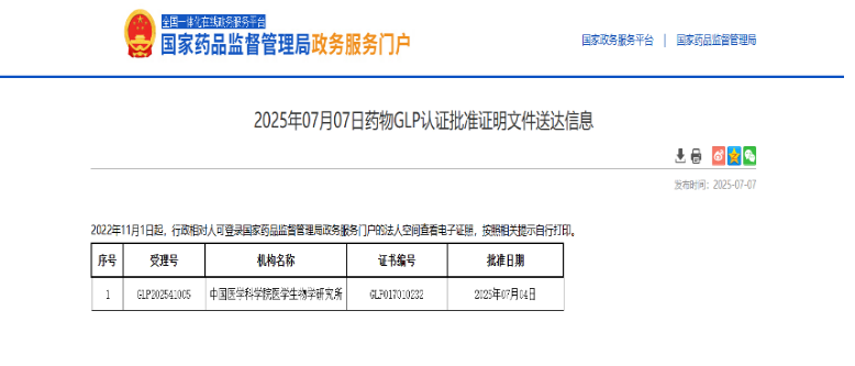 中国医学科学院医学生物学研究所顺利通过NMPA GLP增项认证 ——新增非啮齿类(含非人灵长类)毒性试验资质,助力创新药研发高质量发展